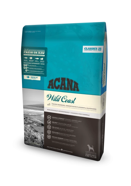 Acana Classics Wild Coast beinhaltet wild gefangenen Fisch aus nachhaltiger Fischerei im Norden der Vancouver Island. Dieser wird frisch und ganz, voller Güte und Geschmack in die Acana Küchen geliefert. Acana Classics Hundefutter ist frei von hoch-glykämischem Getreide und enthält stattdessen viel nahrhaftes Fischprotein und lebenswichtige Omega-3-Fettsäuren um die Gesundheit Ihres Hundes zu unterstützen. Acana Classics Hundefutter beinhaltet niedrig-glykämischen Hafer um einen stabilen Blutzuckerspiegel zu fördern und die Fettspeicherung zu reduzieren.