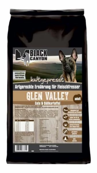 Black Canyon Glen Valley liefert viele Nährstoffe, die bei der Kaltpressung erhalten bleiben, und das Ganze in gewohnt hochwertiger Zusammensetzung mit viel Fleisch, gesunde Kohlenhydrate und ohne Getreide. Ein weiterer Pluspunkt ist die gute Verdaulichkeit von Black Canyon Glen Valley, da es nicht im Magen aufquilt, sondern zerfällt in seine Bestandteile – damit verringert sich auch die Verdauungszeit. Entenfleisch als einzige tierische Proteinquelle, dazu gesunde Süßkartoffeln und Kartoffeln, Ballaststoffe, Vitamine und Mineralstoffe aus Johannisbrot und grünem Tee lassen Ihr Hundeherz höher schlagen.
