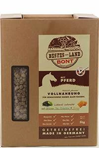 | 31% Pferdefleisch (getrocknet u. gemahlen – entspr. 718g Frischfleisch pro 1000g Vollnahrung), Kartoffelmehl, Kartoffelflock- en, Rapsöl, Apfel, 1% Honig, 1% Grüner Tee, 1% Kokosöl, Pastinaken, Karotte, Kamille, Brennessel, Schwarzkümmel, Johannisbrotkernmehl, Mineralstoffe. |