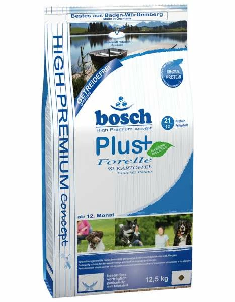 bosch PLUS+ Hundefutter ist besonders für ernährungssensible Hunde sowie für Hunde, die unter Futterunverträglichkeiten und Allergien leiden konzipiert. Mit Forelle als alleinige hochwertige Proteinquelle und hochverdaulicher Kartoffel verwöhnen Sie ihren Hund schonend und natürlich getreidefrei. Die enthaltenen Omega-3 und Omega-6 Fettsäuren sind besonders wichtig für schöne Haut und glänzendes Fell.