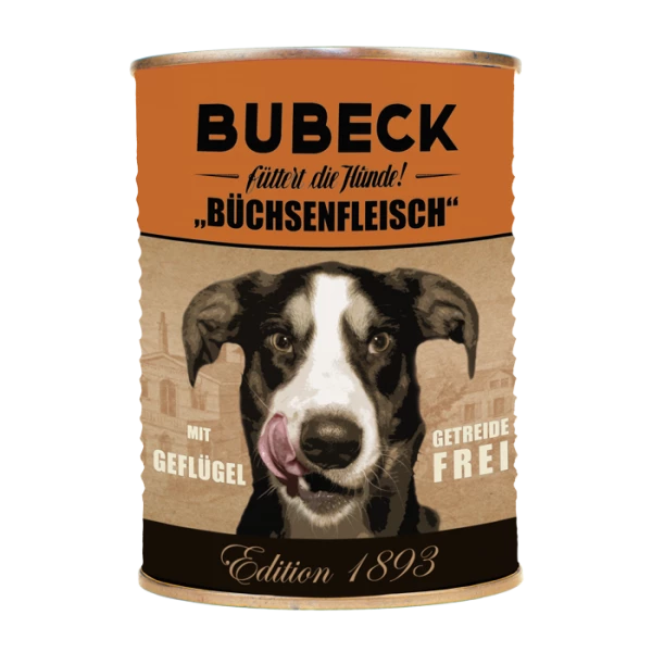 Bubeck Büchsenfleisch ist ein Alleinfuttermittel für Hunde aller Rassen.