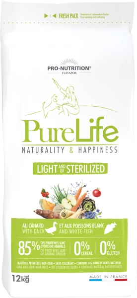 | Getrocknete tierische Proteine (Ente mindestens 4%, Huhn, Pute, Schwein) . Tapioca. Bohnenfasern. Kartoffelstärke. Trockenfisch (mindestens 4%). Erbsen. Leinsaat. Apfelfasern. Entenfett. Tierisches Eiweiß (hydrolysiert). Rapsöl. Artischocke. Fischautolysate (0,6%). Getrocknete Karotten. Melone. Schwarze Johannisbeere. Frukto-Oligosaccharide. Pastinak. Topinambur. Tomaten. Acerola. Algen. Aloe Vera. Rosmarinextrakt. Konservierungsstoffe. Vitamine und Spurenelemente (davon Inaktivierte Selenhefe). |