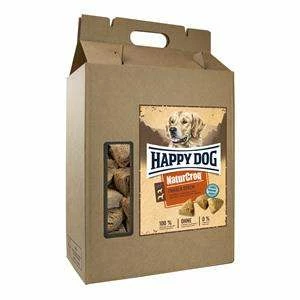 Happy Dog’s gebackene Snacks aus Vollkorngetreide, mit wertvollem grünen Pansen, Mineralstoffen und Weizenkeimen zur regelmäßigen Gebisspflege und für anspruchsvolle Hunde.