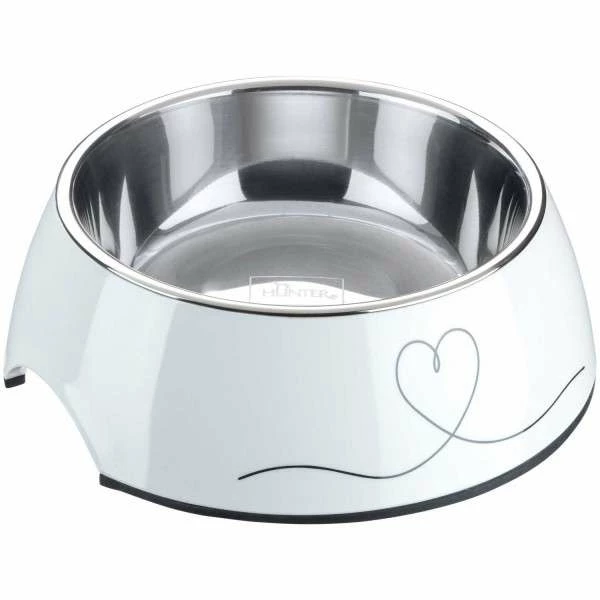 Das Melamingehäuse des Napfs Blies besticht mit einem sehr schönen Herz Druck.