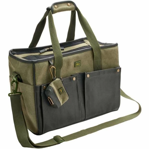 Die robuste Tragetasche MADISON von Hunter ist für kleine Hunde oder Katzen bis ca. 7 kggeeignet und überzeugt auf den ersten Blick mit erstklassig griffigem und stylischem Baumwoll-Canvas und praktischen Details wie einem separaten Kotbeutel-Etui und großzügigen Außentaschen. Ihr Vierbeiner kann von oben in die Tasche gesetzt werden und wird sich auf der kuscheligen Einlage aus Lammfell-Imitat sicher sehr wohl fühlen. Die Tasche lässt sich lässig über die Schulter oder auch einfach in der Hand tragen.