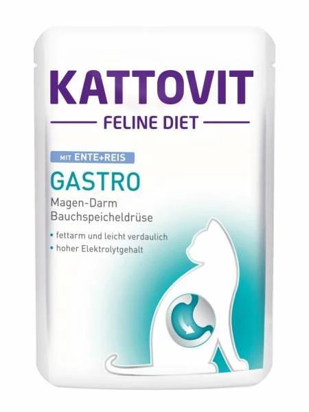 - Kattovit Gastro mit Ente & Reis ist ein hochwertiges Nassfutter, speziell für Katzen mit sensibler Verdauung entwickelt. Die schonende Rezeptur unterstützt die Magen-Darm-Gesundheit.