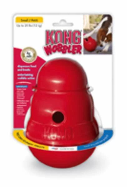 Kong Wobbler ist das unverwechselbare „Steh-auf-Männchen“ und animiert Ihren Hund zum Spielen. Um an die inliegenden Snacks zu gelangen, muss der Hund das Spielzeug geschickt hin und her bewegen, sodass die Snacks durch die seitliche Öffnung fallen.