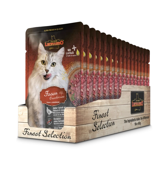 - LEONARDO® Fasan & Cranberry Katzenfutter bietet eine ausgewogene und schmackhafte Mahlzeit für Ihre Katze. Mit hochwertigen Zutaten und ohne künstliche Zusätze.