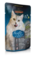 | Forelle (30 %); Hühnerherz, -leber (30 %); Brühe von Forelle, Huhn, Rind (28,7 %); Rinderlunge (10 %); Eierschalen, getrocknet (0,5 %); Mineralstoffe (0,5 %); Lachsöl (0,2 %); Katzenminze (0,1 %) |