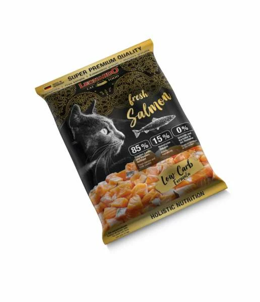 | Frischer Lachs (43 %); Frisches Geflügelfleisch (42 %); Erbsenmehl; Amaranth; Meeres-Zooplankton, gemahlen (Krill, 1,7 %); Ei, getrocknet; Fischmehl aus Meeresfischen, getrocknet, hydrolysiert; Geflügelleber, hydrolysiert; Chiasaat; Bierhefe, getrocknet (0,4 %, Quelle von Beta-Glucanen und Mannan-Oligosacchariden); Johannisbrotschrot, getrocknet; Apfeltrester, getrocknet; Gemüse, getrocknet (Karotten, Pastinaken, Rote Beete, Lauch); Trockenalgen (0,18 %, Chlorella vulgaris); Dicalciumphosphat; Kaliumchlorid; Waldbeeren, getrocknet (gesamt: 0,07 %; Ebereschen, Hagebutten, Heidelbeeren, Holunderbeeren, Johannisbeeren); Cranberries (0,07 %); Kräuter, getrocknet (Brennnesselblätter, Enzianwurzel, Tausendgüldenkraut, Kamille, Fenchel, Kümmel, Mistelkraut, Schafgarbenkraut, Brombeerblätter); Oliven-Extrakt (Olea europaea) | |