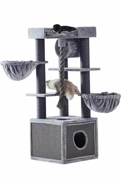 - Der Nobby Kratzbaum ADILE in Grau ist ein hochwertiges Katzenklettergerüst mit einer Höhe von 166 cm, das Ihren Katzen viel Platz zum Spielen, Klettern und Entspannen bietet.