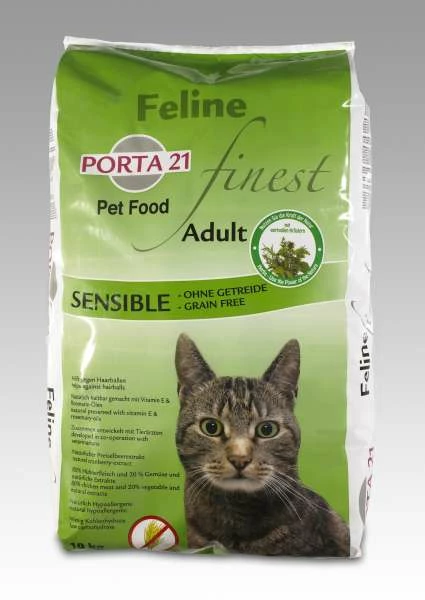 Porta21 Feline Finest Sensible ist ein getreidefreies Katzenfutter (Alleinfutter) für alle ausgewachsenen Katzen.