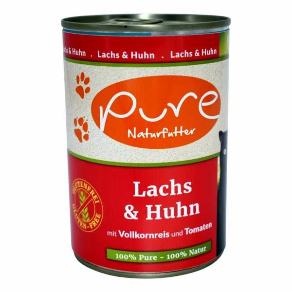 PURE Katzenfutter mit Lachs & Huhn | 6 x 400g | Glutenfreies Nassfutter für Katzen