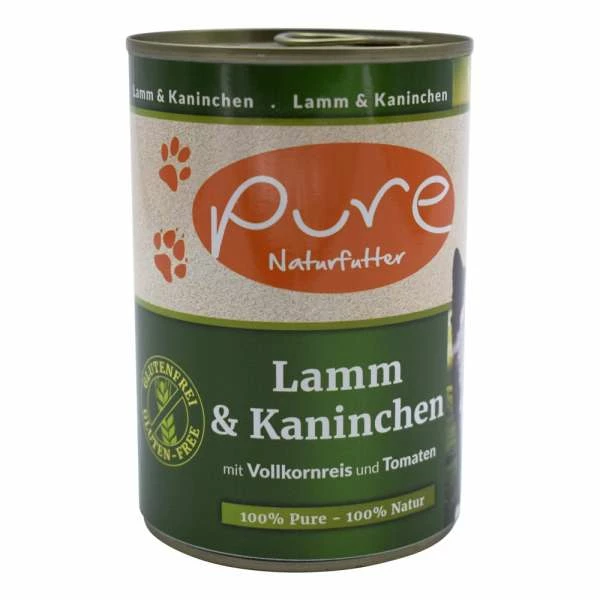 Pure Katzenfutter mit Lamm & Kaninchen | 6 x 400g | Glutenfreies Nassfutter für Katzen
