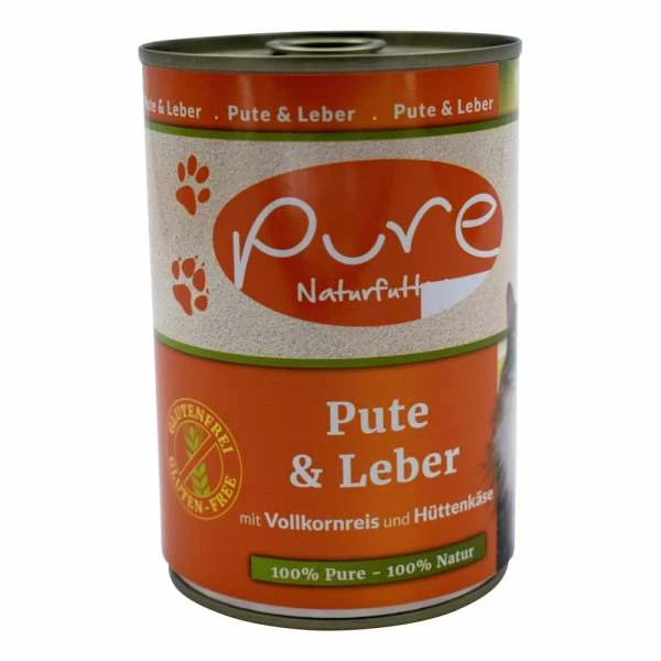 Pure Katzenfutter Mit Pute & Leber | 6 x 400g | Glutenfreies Nassfutter für Katzen