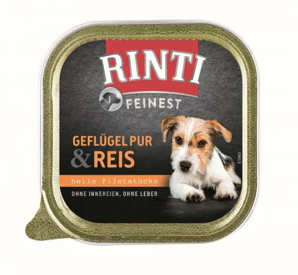 - Hochwertiges Nassfutter für Hunde: RINTI Feinest Geflügel Pur & Reis bietet eine ausgewogene Mahlzeit mit feinstem Geflügel und Reis, perfekt für eine gesunde Ernährung Ihres Hundes.