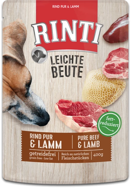 - RINTI Leichte Beute bietet eine ausgewogene Mahlzeit mit Rind und Lamm, speziell für Hunde entwickelt. Jede Dose enthält 400g hochwertiges Nassfutter.