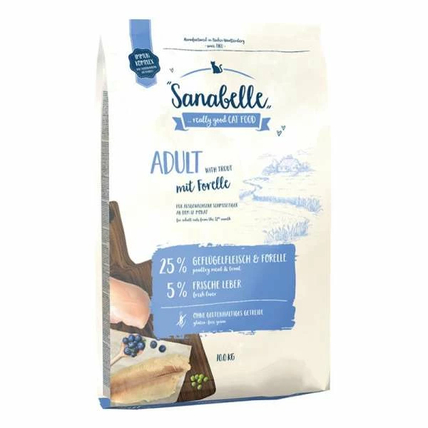 Das Katzenfutter Sanabelle-Adult mit zarter Forelle ist ein Alleinfuttermittel und besonders geeignet für Hauskatzen.