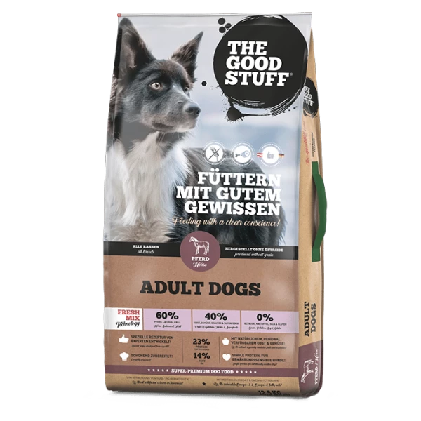 • THE GOODSTUFF Adult Dog Trockenfutter mit Pferd bietet eine hochwertige, getreidefreie Ernährung für Ihren Hund. Ideal für eine ausgewogene und artgerechte Fütterung.