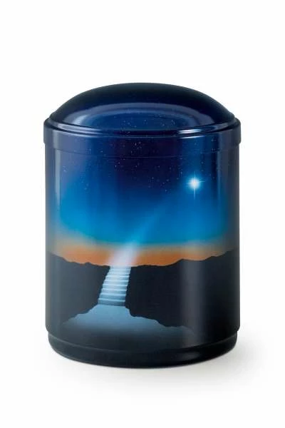Diese Katzenurne bietet eine würdevolle Möglichkeit, die Asche Ihres geliebten Haustiers aufzubewahren. Die Landschaftsmotive sind liebevoll gestaltet und symbolisieren Frieden und Erinnerung.