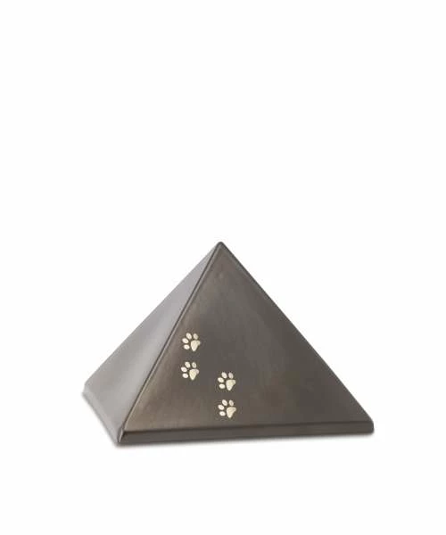 Die Völsing Tierurne Pyramide ist eine stilvolle und würdevolle Aufbewahrungsmöglichkeit für Ihre verstorbene Katze. Mit ihrer einzigartigen, perlmuttschillernden Oberfläche und den vier goldenen Pfötchen verleiht sie jedem Raum eine besondere Note.