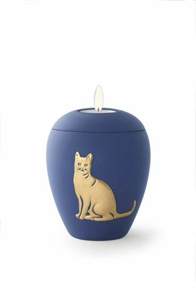 Völsing Tierurne Siena | Einfarbige Katzenurne mit goldenem Relief | Samtene Oberfläche | Gedenkurnen für Katzen